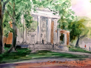 Many beautiful churches, houses and public buildings are framed by the brick streets which make a pleasing, colorful foundation for my sketches and paintings.